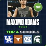 By JAMES MADDEN Maximo Adams – a top-25 ranked forward in the class of 2026 is expected to announce his commitment on Friday, ESPN’s Paul Biancardi reported. The 6-foot-7 forward from Sierra Canyon (CA) will choose between Kentucky, Michigan State, North Carolina and Texas. Adams recently visited all four schools and also visited Kansas in September before cutting his … [Read more...] about Top-25 forward Maximo Adams to commit on Friday