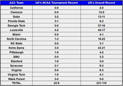 Kentucky Basketball Against The ACC