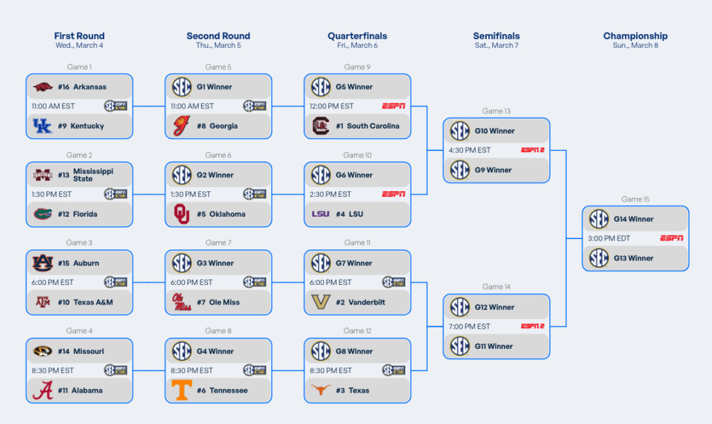After losing Sunday’s game to South Carolina in Lexington, Kentucky Women’s Basketball found itself in the No. 9 spot in the SEC Women’s Basketball Tournament bracket. Kenny Brooks’ team will open SEC Tournament play against Arkansas in Greenville, South Carolina. The Wildcats and Hogs will play the first game of the tournament at 11:00 a.m. on Wednesday, March 4. A win will set up a matchup against No. 8 seed Georgia in the next round.